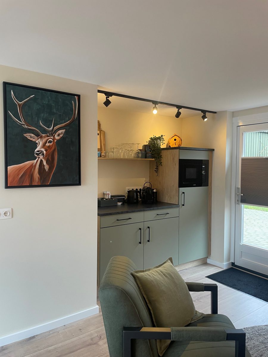 Op het erf staat een vrijstaand appartement Het Vogelhuisje. Het is geschikt voor twee personen. Het Vogelhuisje beschikt over een zitkamer, een slaapkamer en een luxueuze badkamer.